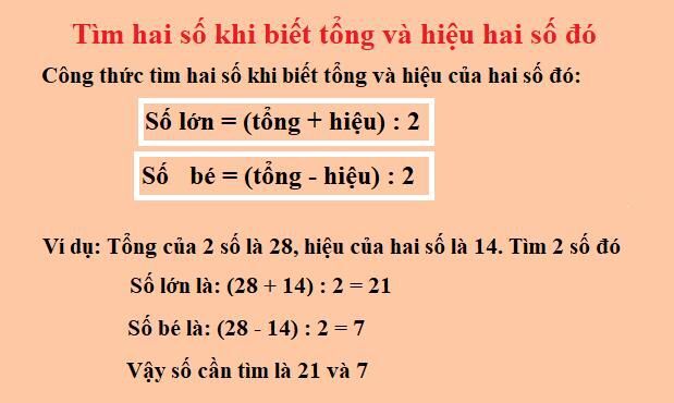 b) Dạng bài toán tìm hai số khi biết tổng & hiệu của hai số đó