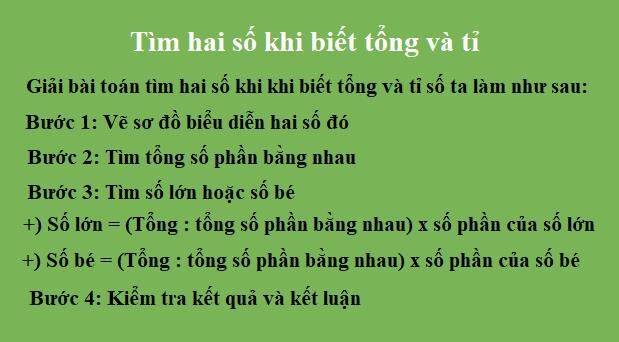 c) Dạng bài toán tìm hai số khi biết tổng – tỉ hoặc hiệu – tỉ của hai số đó